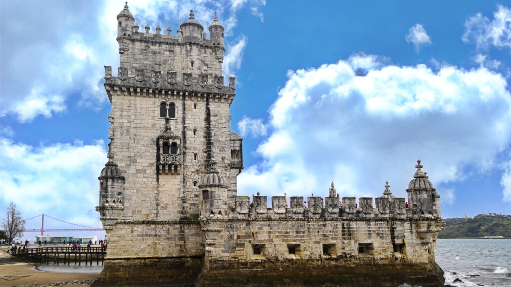 Der Torre de Belém in Lissabon ist eines der bekanntesten Wahrzeichen Portugals. Er wurde zwischen 1514 und 1520 am Ufer des Tejo erbaut und diente ursprünglich als Verteidigungsturm zum Schutz des Hafens sowie als symbolisches Tor zur Welt während des Zeitalters der Entdeckungen. Der Turm ist ein Meisterwerk des manuelinischen Stils, reich verziert mit maritimen Motiven, Wappen und Ornamenten. Später diente er auch als Leuchtturm und Gefängnis. Heute gehört der Torre de Belém zum UNESCO-Weltkulturerbe und steht als Symbol für Portugals maritime Geschichte und die Blütezeit der Seefahrt.